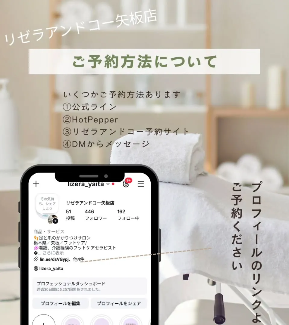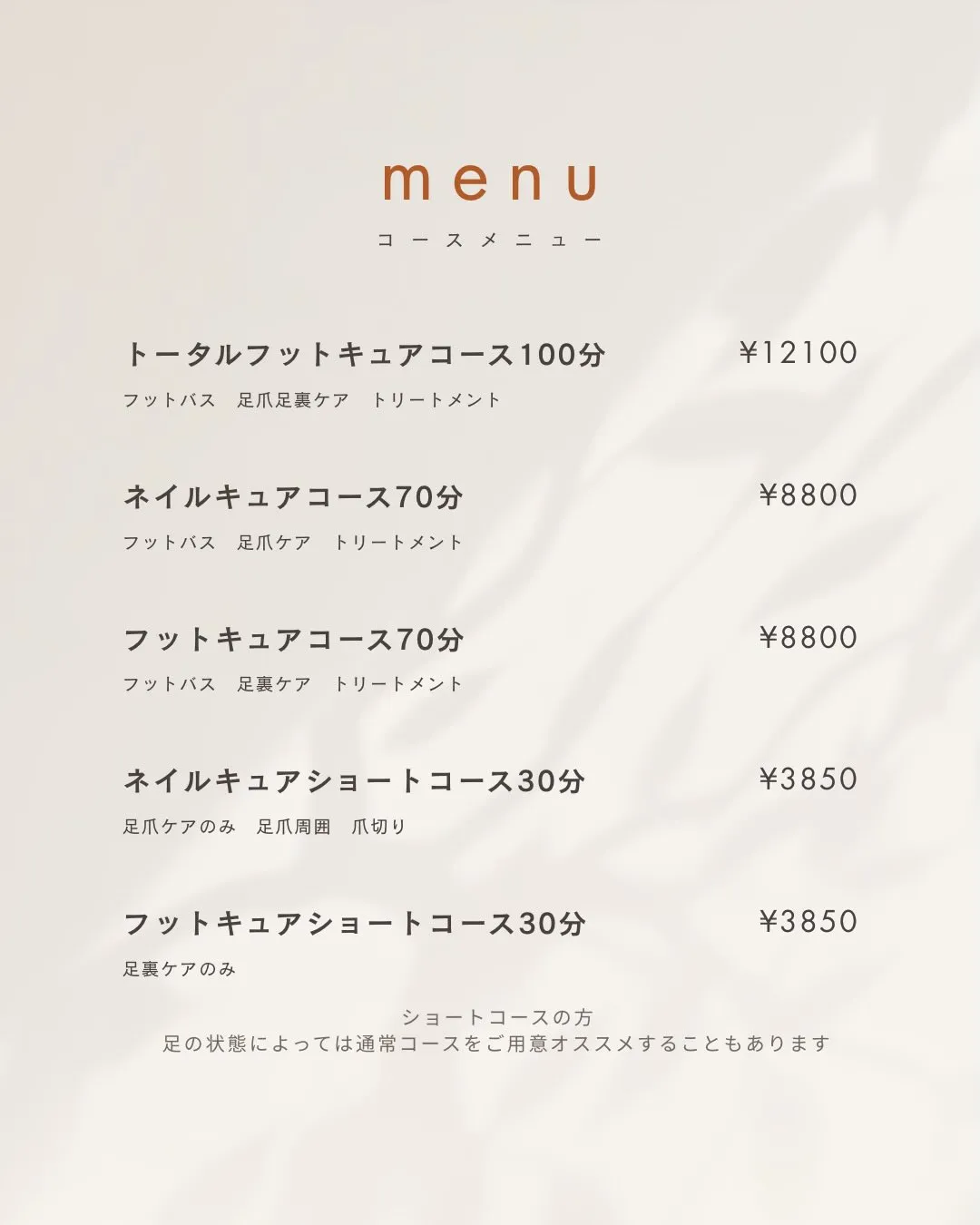 お客様に心からリラックスしていただけるように、空間作りにも注力しているフットケアサロンを運営していますので、初めての方も安心してお任せください。一人ひとりに十分な時間をかけて施術を行い、ご満足いただけるように取り組んでいます。また、再発防止などに関するアドバイスも提供しています。